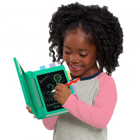 - Write or doodle on the notebook with the dry erase marker and push the button to light up the board with different colors.