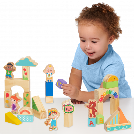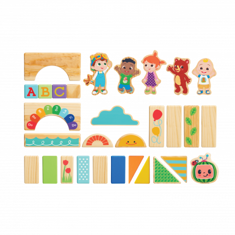- Learn and Play the CoComelon Way: The CoComelon JJ & Friends Wood Block Set includes different shapes, patterns, and CoComelon characters. Kids can build a playground for JJ and his friends!