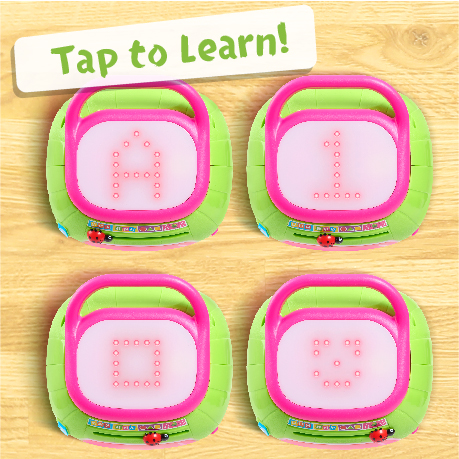 - Tap to Learn: Slide the ladybug to select a mode, then tap the top of the melon to learn and play. The light-up, touch-sensitive LED screen changes according to mode. For example, in ABC mode, it plays "A is for apple," while the letter A is displayed on the screen.