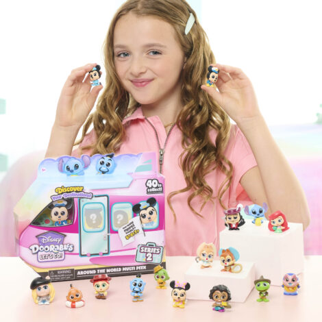 With Disney Doorables Let’s Go Around the World Figure Peek, there’s no telling what kind of adventures await – or which travel buddies will come along on the trip. First, unpack the blind bag suitcase to reveal a guaranteed 5, but perhaps, 6, or even 7 fantastic Doorables characters ready to travel to an exciting destination: a dude ranch, an exploration, an international trip, a cruise, or an around-the-world getaway. Kids will have fun guessing which vacation by the figure’s outfit and accessories. Each kid’s toy character stands approximately 1.5 inches tall and features stylized detailing with sparkly glitter eyes. Series 2 contains 40 imaginative vacation-themed figures from favorite Disney and Pixar stories. Collect them all for the happiest bon voyages and fun displays (each sold separately). Disney Doorables figures make wonderful holiday, birthday, or anytime gifts for fans of Disney toys, collectors, and kids ages 5 years and up.