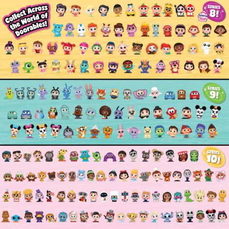 - Behind every door, a huge surprise is in store with Disney Doorables Mega Village Peek, full of beloved characters from Series 8, 9, and 10.