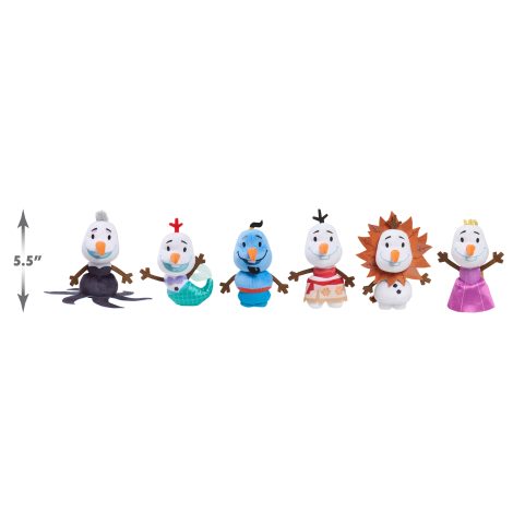 • A Surprise In Every Snowball: Each white, embossed blind capsule holds a mystery Olaf Presents mini plush figure. Will it be Olaf dressed as Moana, Olaf as lion king Simba, Olaf as mermaid Ariel, Olaf as Rapunzel, Olaf as Ursula, or Olaf as Genie?
