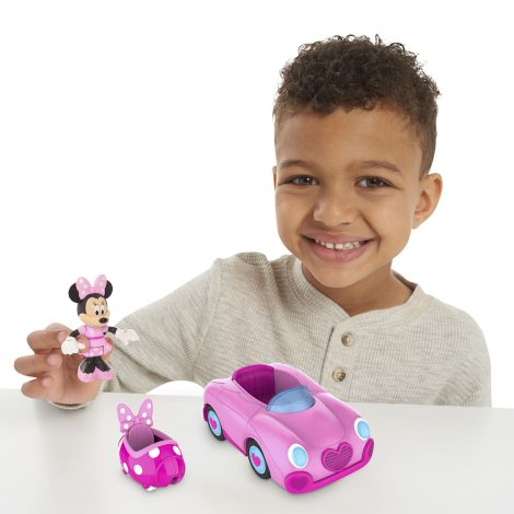 - This 2-in-1 transforming set includes one 3” Minnie Mouse Figure, one car, and one Floaty Coaster pod.