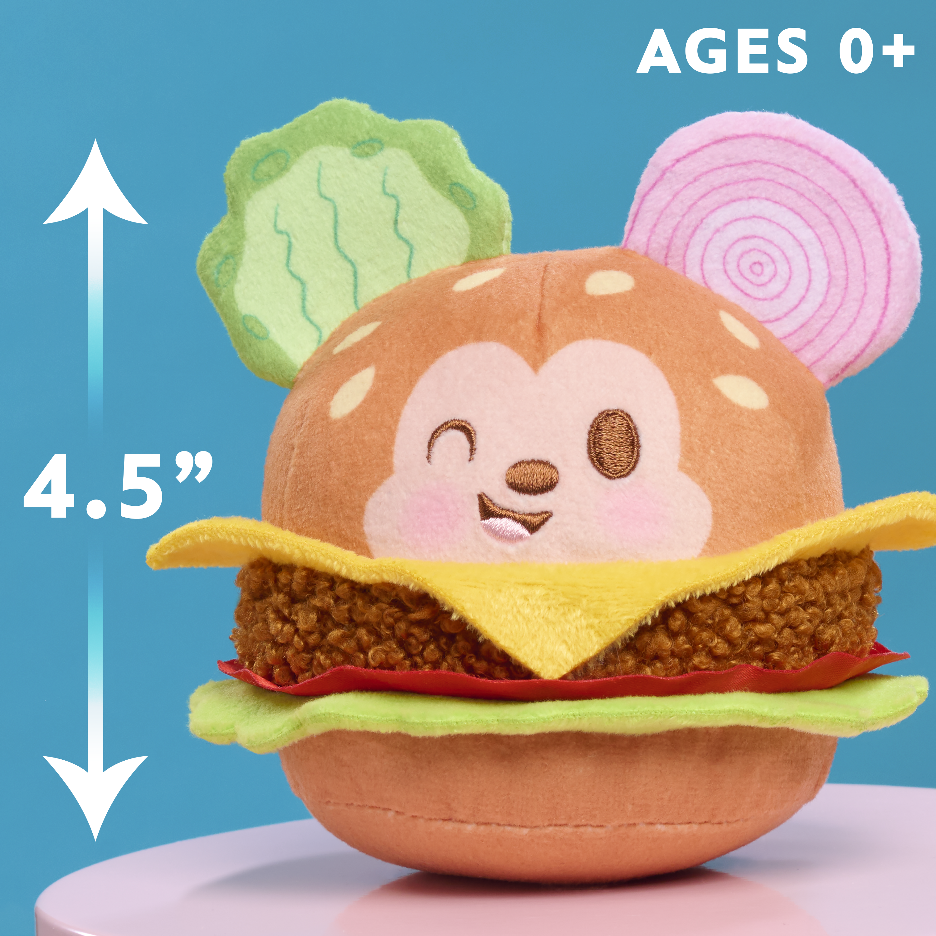 Disney Munchlings Single Serve Collectible Plush are fun to squish and smell delish! Open the cone-shaped blind box to discover 1 of 11 Disney and Pixar characters reimagined as 4.5-inch handheld treats – like the Loaded Cheeseburger Mickey Mouse plushie. Each yummy-looking Munchlings small plush kids’ toy features irresistibly soft mixed fabrics, embroidered details, imaginative applique, and the irresistible scent of favorite sweet and savory treats. These sweet plushies are cuddly enough for infants, are unique surprises for collectors, and are deliciously fun for all fans of Disney toys. They make snuggly gifts - and wonderful additions to kids’ beds, dorm rooms, or party décor. For the sweetest cuisine dreams, collect all 11 Disney Munchlings Single Serve scented plushies from Series 2. With beloved characters including Disney’s Mickey Mouse, Minnie Mouse, Stitch, Piglet, Roo, Olaf, Marie, Beast, Cogsworth, the rare Bruni, and Disney and Pixar’s Rex (each sold separately), there’s a Munchlings pal for every Disney fan. Ages 0+