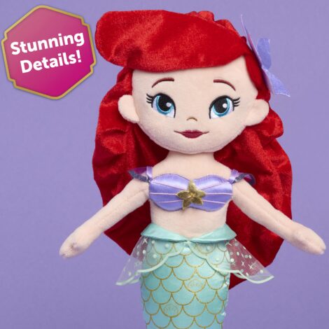- Includes: Disney Ariel plush doll.