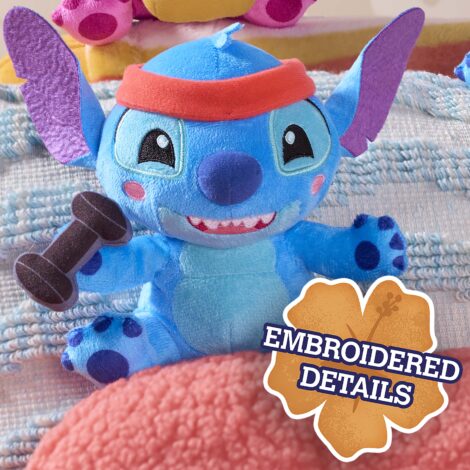 - That’s So Stitch: Stitch loves staying in shape! This Disney Stitch small plush doll wears a sporty red headband and holds a fabric barbell, ready for weightlifting fun.