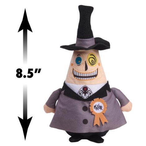 - Cuddly Companion: The Mayor of Halloween Town is reimagined as an 8.5-inch plush doll crafted from soft, mixed fabrics with embroidered, appliqued, and printed details.