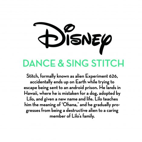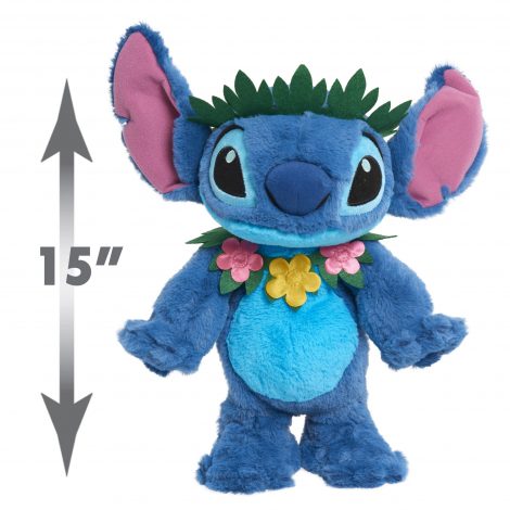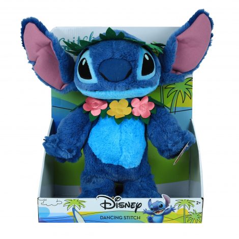 Bring home the adventures of Disney’s Lilo and Stitch with the adorable Dancing Stitch Feature Plush! This lovable alien is made with amazing detail and features soft deluxe fabrics! Stitch stands approximately 14 inches tall and comes wearing a felt floral lei and headdress. Press Stitch’s foot to watch him Hula dance and sing! Requires 3 x AA batteries (included). Ages 3+