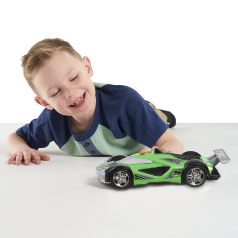 - Motorized Racing Action: This epic, large-scale Hot Wheels race car features motorized drive, flashing lights, realistic racing sounds, and rockin’ music!