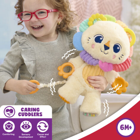 - Fidget-Friendly Plush: Designed to soothe, engage, and calm, this lovable lion offers built-in fidget features to ease restless energy. A cuddly, tactile companion that provides emotional support at home or on the go.