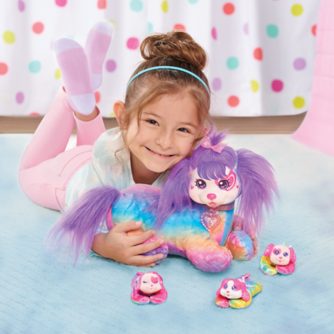 - Colorful Dog and Puppies: Cherry features super soft rainbow fur, purple ears and tail, and gorgeous details on her soft-molded face; her pups feature coordinating colors with unique, individual ears, markings, and coloration.