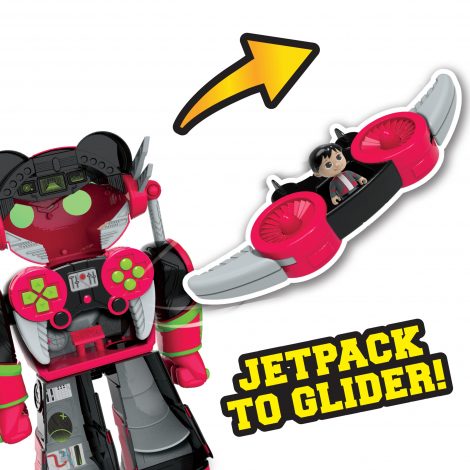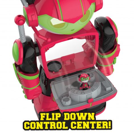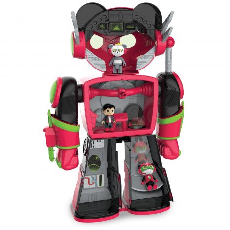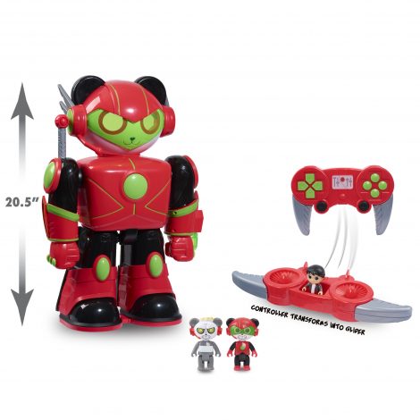 Get ready for the pada-moniun when you bring home the Ryan’s World Giant Boss Mode Combo Panda! Featuring three levels of double-sided play, Boss Mode Combo Panda includes three poseable figs: Ryan, Combo Panda, and Robo-Combo. Kids can look through the top of Combo Panda and pretend to use his Panda Vision. Open the Control Center on Combo Panda’s armor and place the figs inside the control center. There is even a hidden slide between the second and first levels! Push the button on Combo Panda’s right arm to activate punching action. Aim his left arm and press the button to launch a rocket. His jet pack looks like a gaming remote and even turns into a glider! Place Ryan in the flight seat and take off. Bring home the Ryan’s World Boss Mode Combo Panda and the rest of the Ryan’s World inspired toys, and let your little fan bring their own imagination to life! Ages 3+