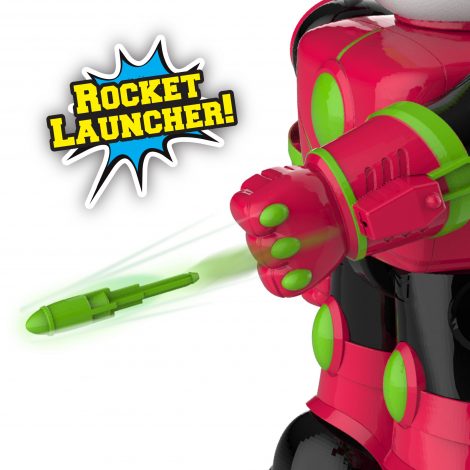- Aim his left arm and press the button to launch a rocket.