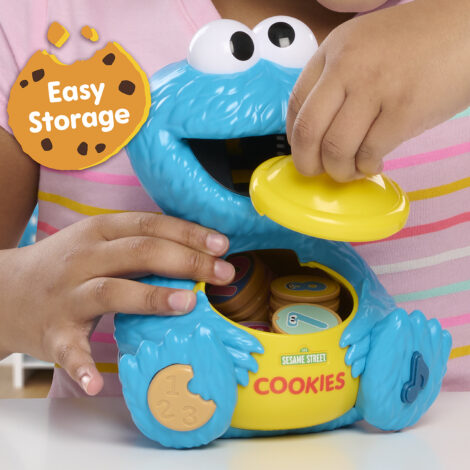 - Cleanup and Storage: Feed cookies to Cookie Monster, and they fall into the cookie jar. To play again, just lift the lid and scoop out the cookies. Store cookies inside the jar for easy cleanup.