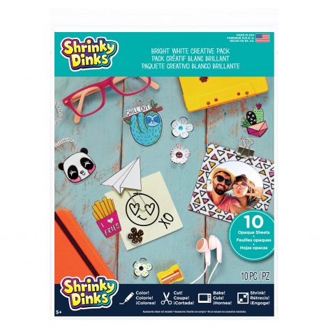 Little artists can turn their visions into reality with the Shrinky Dinks Bright White Creative Pack! This arts and crafts activity set includes ten bright white coloring sheets that can be used to create one of a kind pieces of art! Kids will love turning their masterpieces into jewelry they can wear or figurines they can create fun adventures for! With five easy steps they can create three-dimensional pieces of art and transform drawings into unique trinkets. Use permanent markers to trace or draw and color each sheet. Then cut, bake and shrink! Kids will love to make keychains for bright backpack accents, charms to fit their own personalized style, or custom gifts that last a lifetime! The possibilities are endless! Adult supervision required. Ages 5+