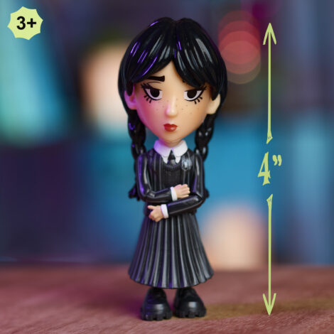 - Frightfully Fun Figure: Wednesday Collectible Figures reimagine Wednesday Addams and her crew of outcasts as 4-inch, stylized figures with articulated arms for poseability. Perfect for play or display.